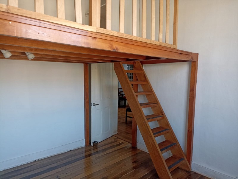 Escalera que conduce a dos pequeños sótanos y salida independiente hacia pasaje con acceso a calle Artillería y conexión a Carampangue.